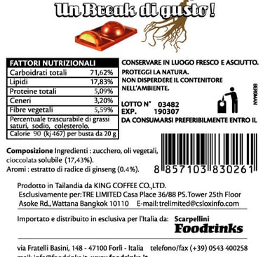 Sugar, Instant cocoa powder 12.5%, Non dairy creamer (from oils of Palm), Organic Ginseng Extract 1 % ,